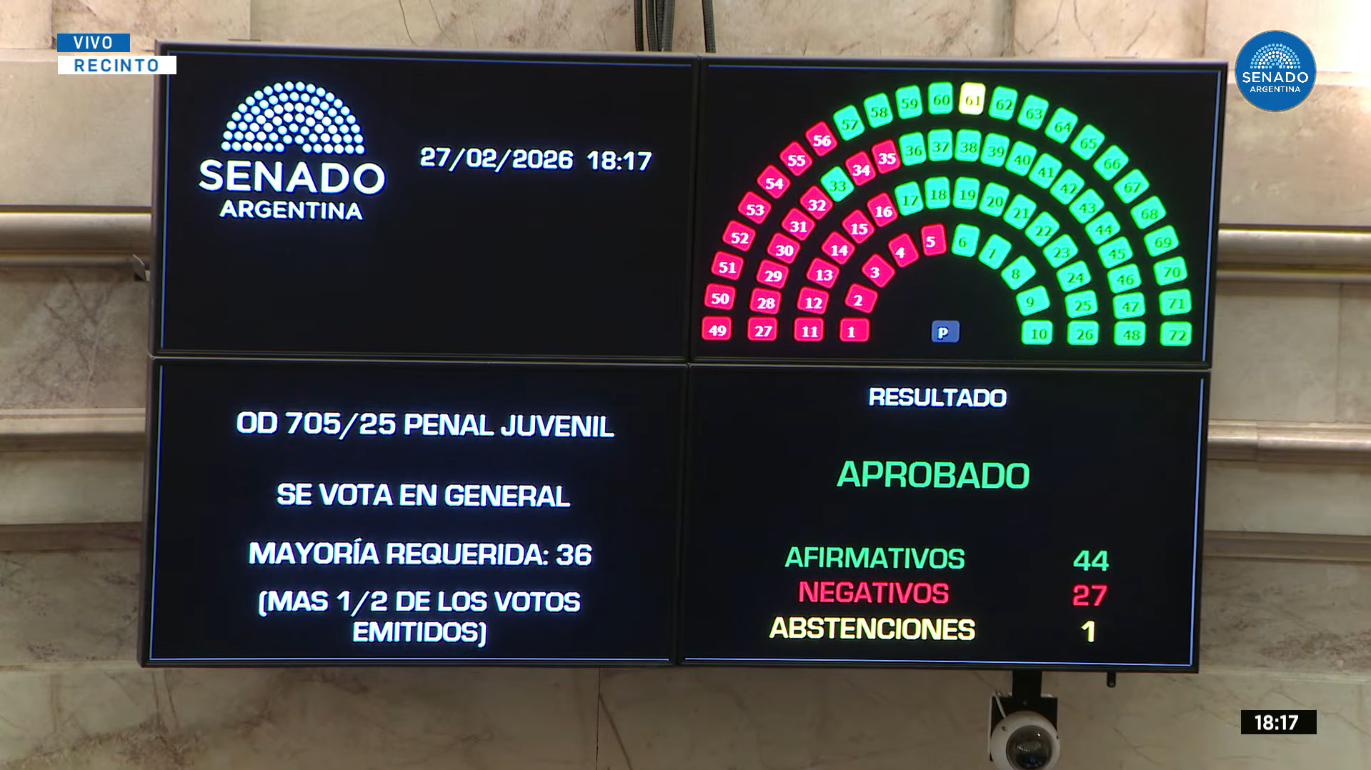 El 27 de febrero el proyecto de Régimen Penal Juvenil recibe la segunda media sanción por parte del Senado argentino y el 9 de marzo es promulgado por el Poder Eje-cutivo Nacional. Se consolida así la agenda de seguridad del gobierno de Javier Milei.